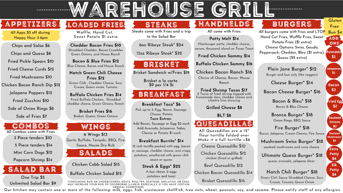 Warehouse Food Hall Menu